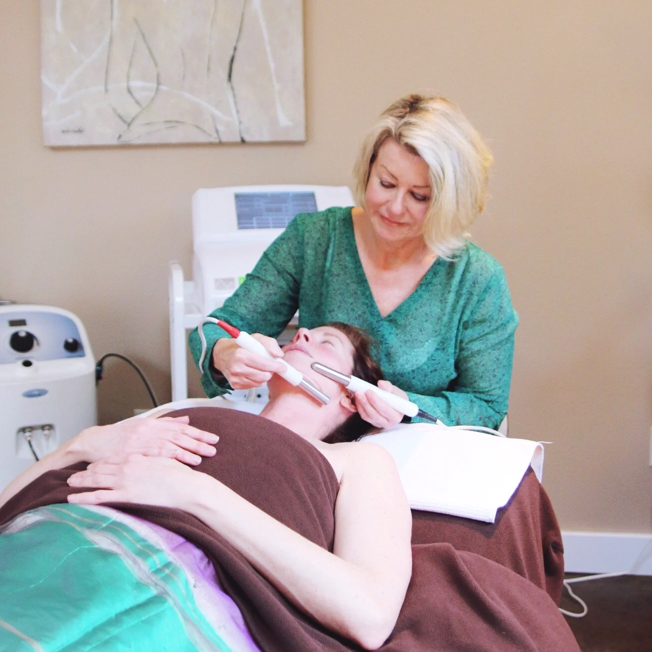 Cleanse, followed by 30 minutes of Anti-aging RED or acne bacteria killing BLUE light. Can be booked as a stand alone treatment or may be an ADD-On to your facial, Microcurrent or enzyme peel.